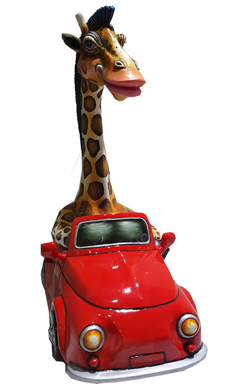 "Jirafa en Auto" Mixta - 40 x 17 x 37cm.
